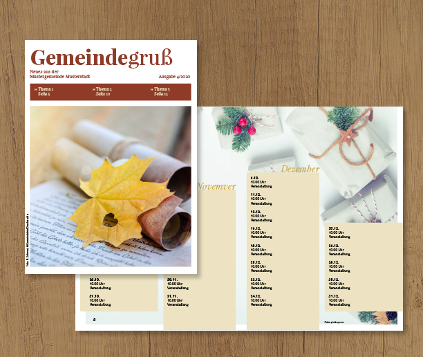 Laden Sie die gewünschte Vorlage herunter und kopieren Sie die Elemente der Kontaktseite einfach in Ihren Gemeindebrief (Kopieren = Str. + C | Einfügen = Str. + V).