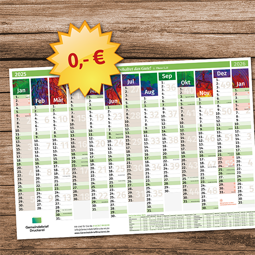 Ein übersichtlicher Jahresplaner im A4-Format für Ihre Terminplanung in der Gemeinde.